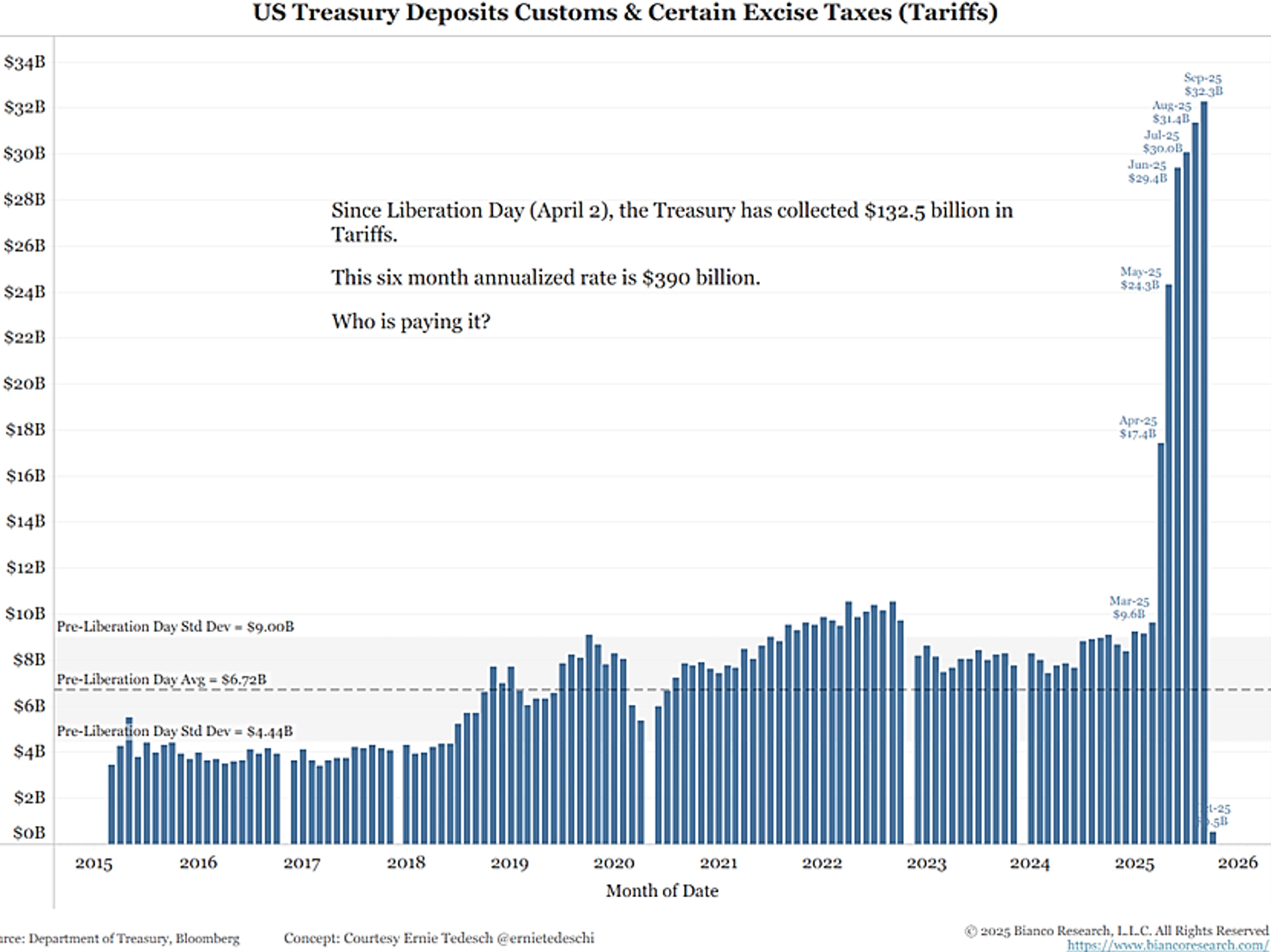 Any discussion of tariffs wouldn’t be complete without an observation about the revenue being generated. Through August, the annualized tariff revenue has been noteworthy: